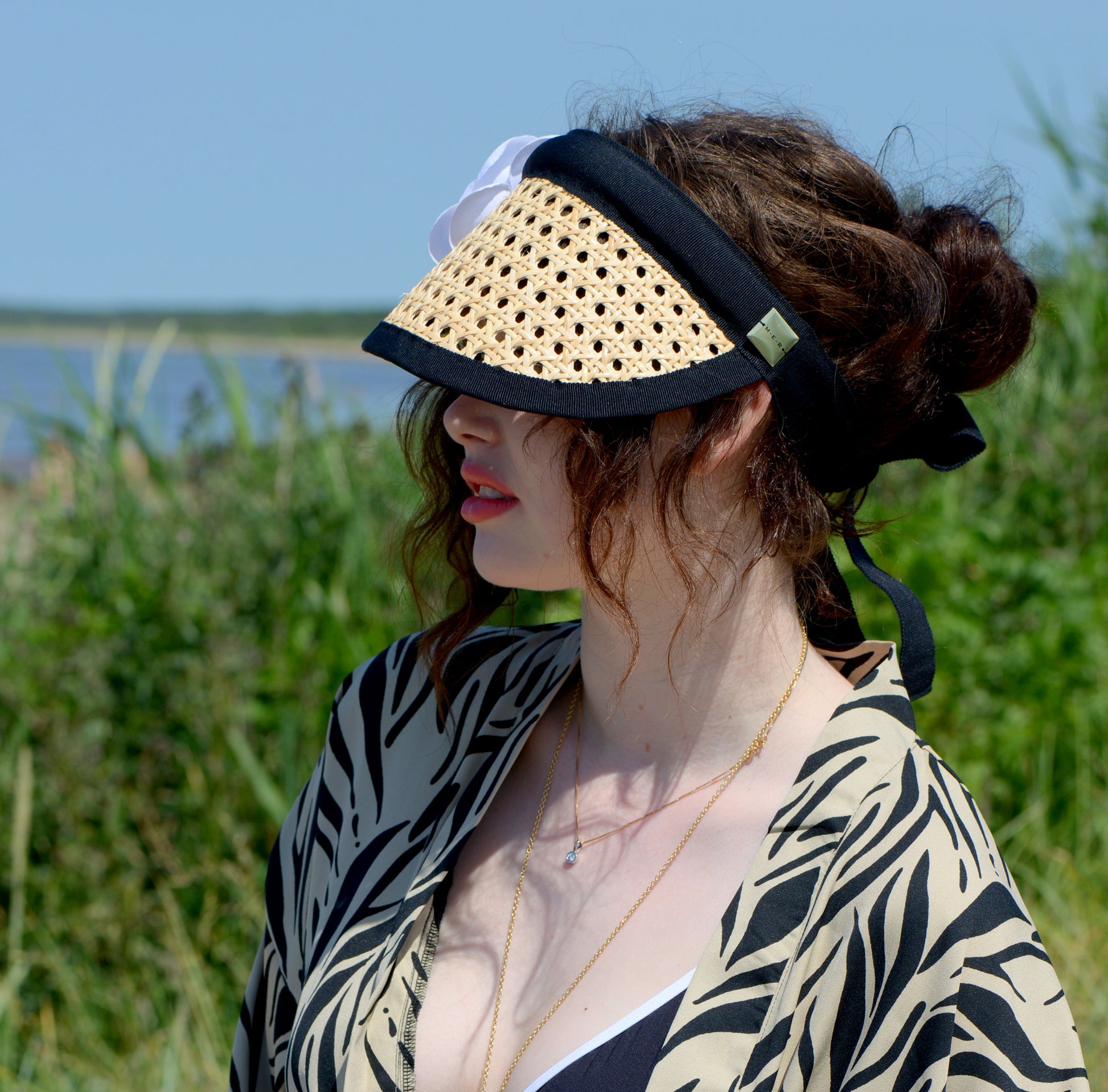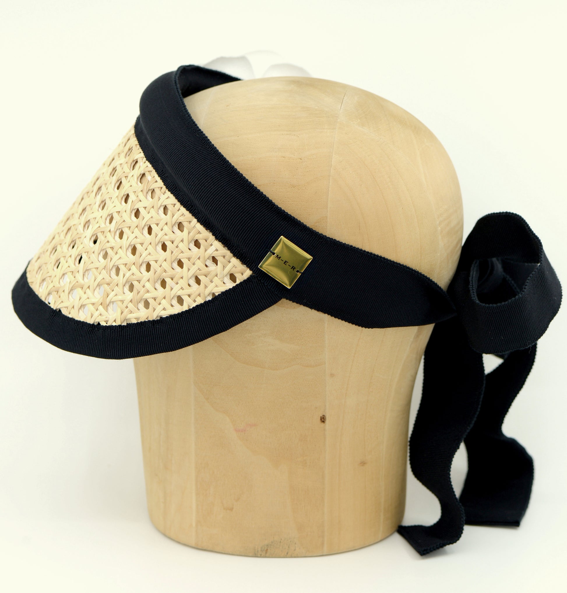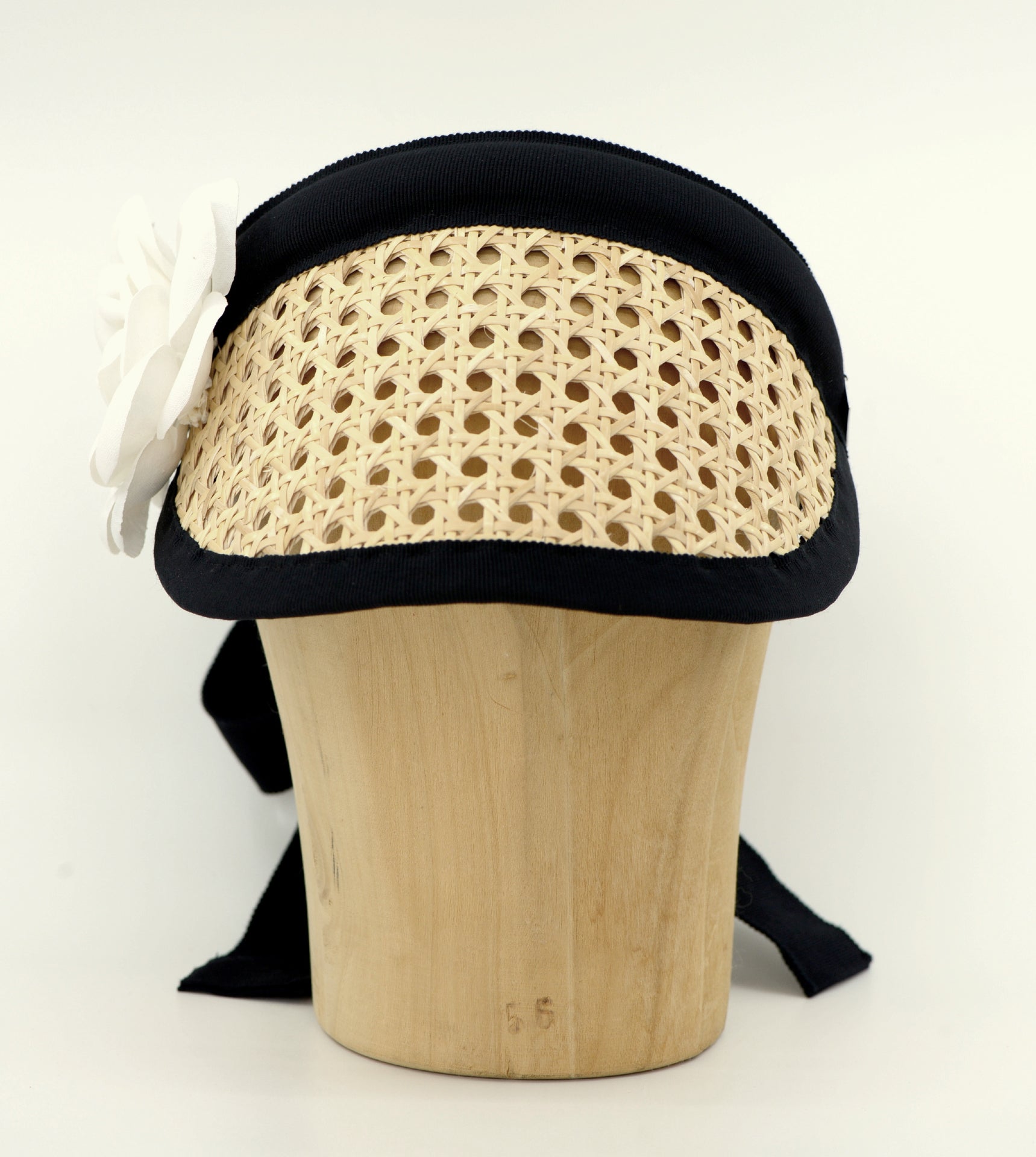 - Solskärmen tillverkad i äkta formad rotting med vadderad svart bomullsripsband.
