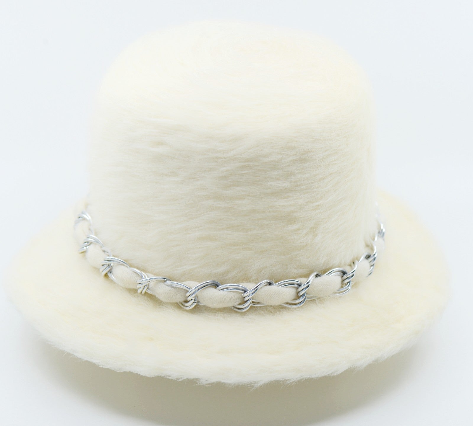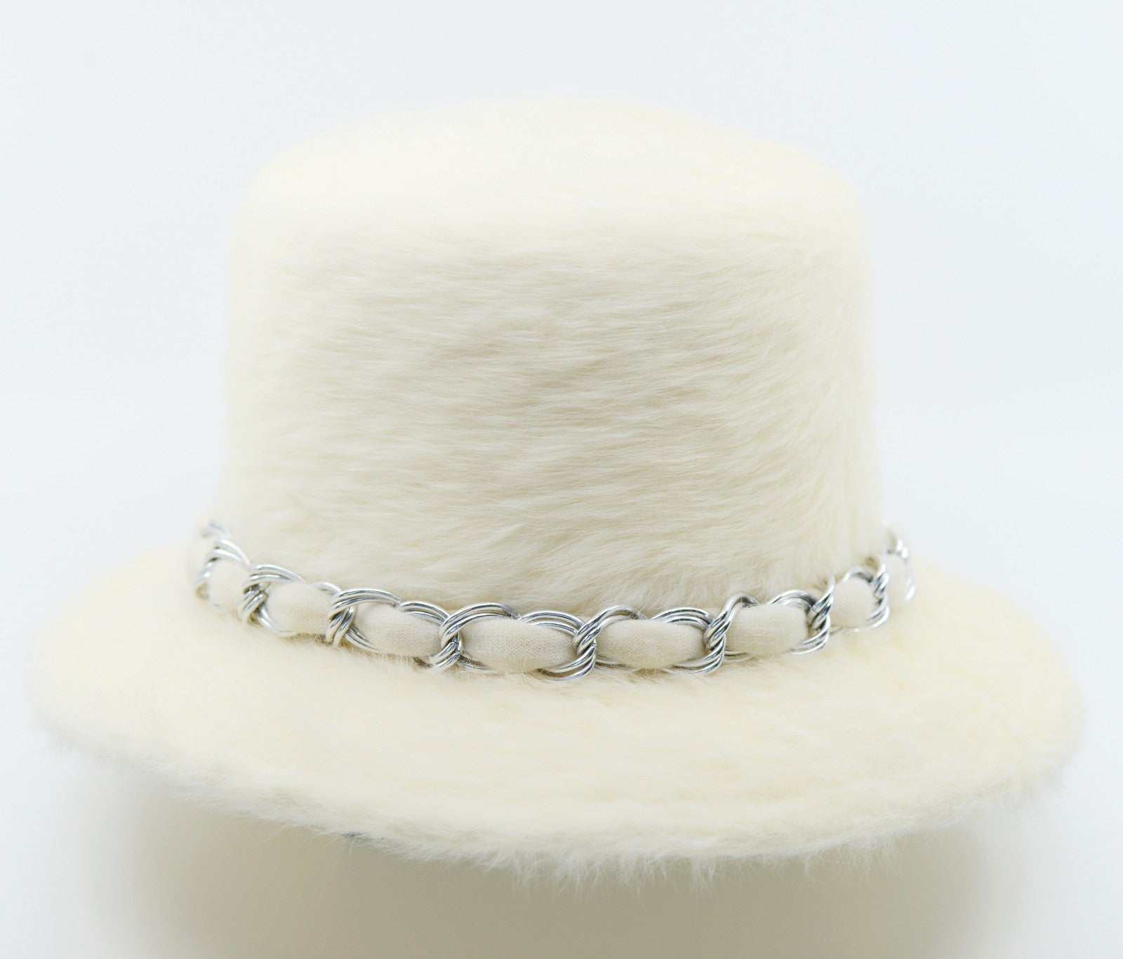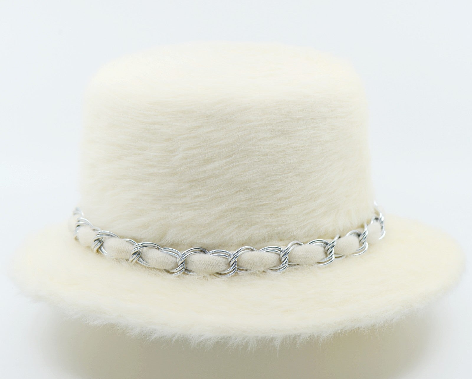 - Gräddvit hatt i mjuk långhårig melusinhårfilt.