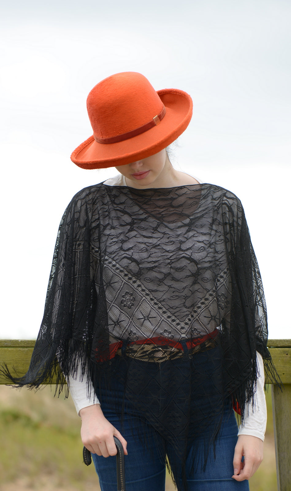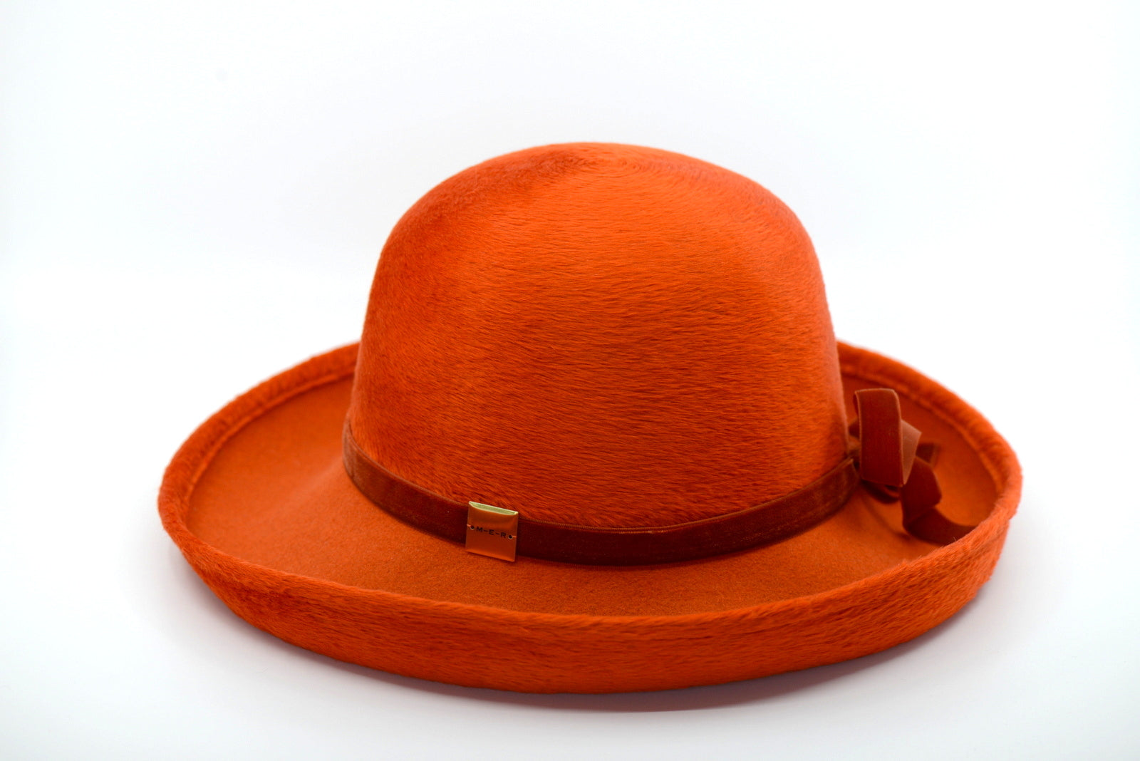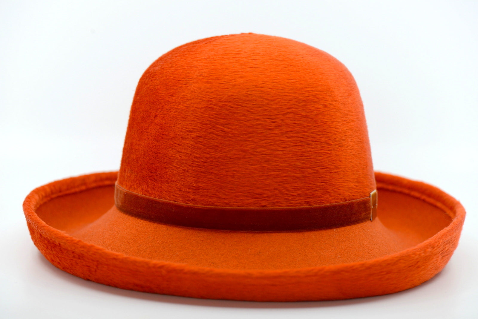 Vacker mjuk mörkorange hårfiltshatt.