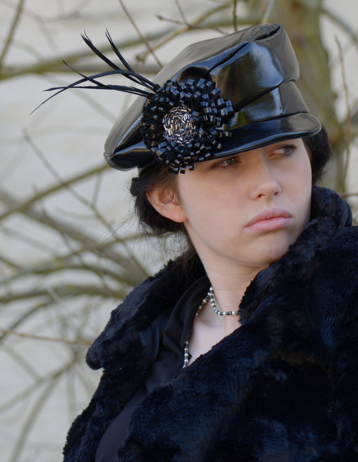 Klassisk Vega keps i svart lackskinn med en nostalgisk look.